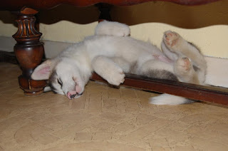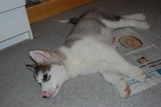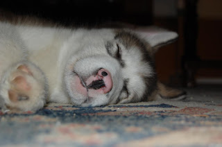 After some play with the new bones, and running after me (he saw that I bought a few pack of his food, so he was quite happy...), he went to sleep - and I think I know what his dream was about...