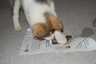 雖然還小,搞不懂去花園的目的是啥,甚至還因為鄰居做工程,回聲過大,而從花園一溜煙逃回車庫裡。至少Denver已經了解,在報紙或大抹布上上廁所是會讓媽媽高興的一件事。
