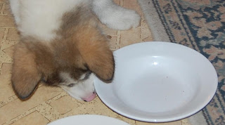 因為從出生之後到來到我家之前,丹丹都住在戶外寬敞的空地上,從來沒帶過項圈或被人牽過。今天便憑著他好吃的弱點,拿乾糧做獎品,訓練他在家裡被牽著走,還有到達目的地的時候叫他坐下。丹丹大概走了四五遍就知道我是在叫他坐下了,希望他明天還記得。