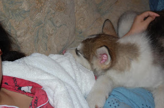 手術完兩天就多了一隻小狗。感覺好像是專程去了醫院剖腹,只是生出來的不是人類。小狗認得我了,早上看到我會來打招呼(只跟我打招呼),害怕的時候也是馬上衝來躲在我腳邊,沒有其他狗朋友可以玩得時候也是跑來我旁邊玩咬咬。就是個小孩子,什麼都想玩都想咬都想吃,玩累了倒頭就睡。大概是會看臉色了,至少知道哪個人類比較耐不住撒嬌或是硬凹,可以討東西吃。我是鐵板,所以還沒來試探我。