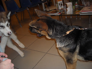 There he met a young German Shepperd of his age. Well... at the beginning, Denver was a little bit shy... unlike this new "friend" who's called Kenzo. This doggy was way happier to see Denver, so he was quite playful... he gave a lot of kisses to Denver... but Denver was more reluctant to receive them... Our Denny only gave one or two, but was more like "Ok, I will be polite..."