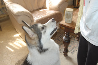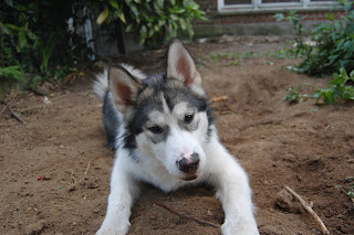 When Nuage went out in the street, a mom and her two daughter stopped Nuage... They wanted to know who was the so nice dog she had - They noticed him on the window for some times and were wondering if Denver was a Husky or the "other breed" :-)