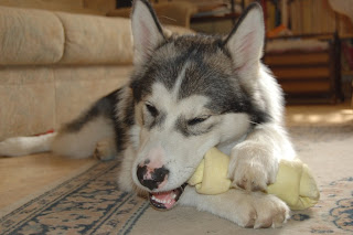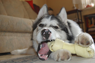 Of course, we had a mini birthday party and Denver received a new bone - and as usual, Denver was quite happy when he saw we had a new gift for him: A brand new bone...
