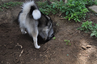Denver loves to eat roots - so much he can actually dig really huge holes... But here, it's really deep - Is he actually preparing a den ?
