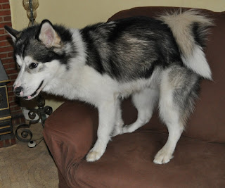 I am not kidding - Denver comes on my lap (the front leg and head, the back legs are on the ground) and he eats his chew toys on me, or sometimes asks me to hold it so he can chew more comfortably...