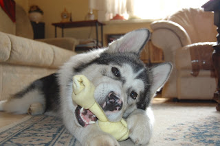 Of course, we had a mini birthday party and Denver received a new bone - and as usual, Denver was quite happy when he saw we had a new gift for him: A brand new bone...